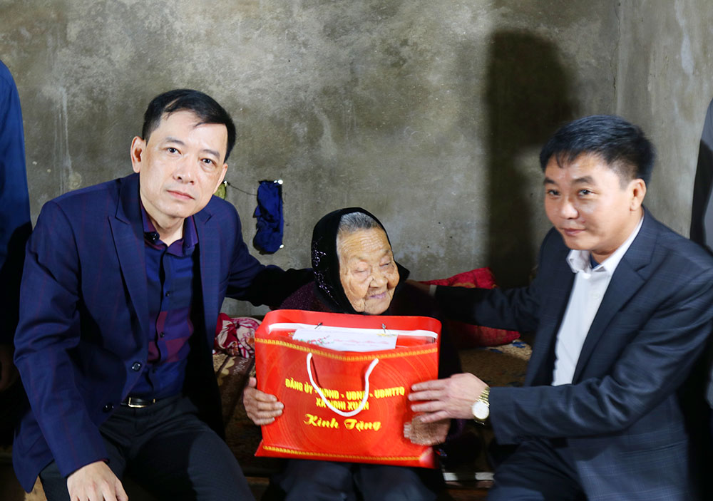 Đồng chí Phạm Chí Hiếu – Bí thư Đảng ủy – Chủ tịch HĐND xã cùng đoàn đã đến thăm, tặng quà thương binh Trần Thị Tâm ( thôn Xuân Lĩnh 4)…