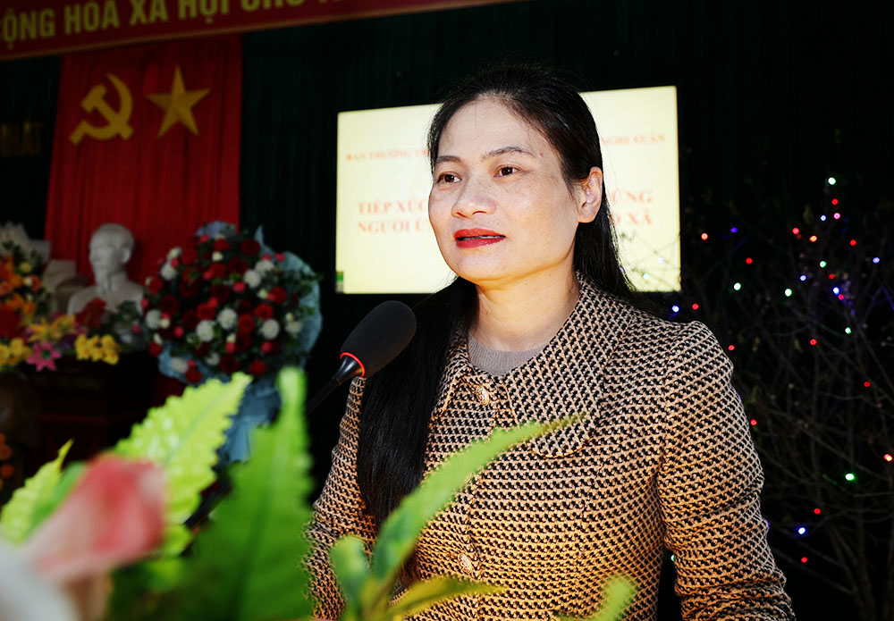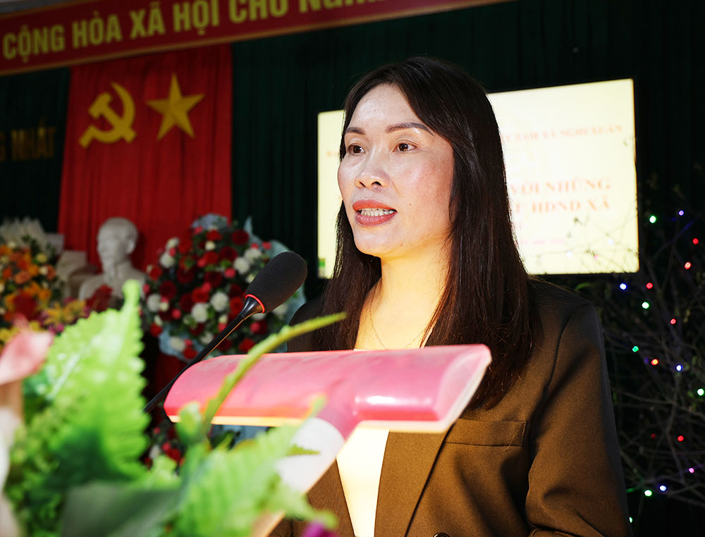 Bà Lương Thị Hà - Ủy viên Ban Thường vụ Đảng ủy, Chủ tịch UBMTTQ xã Nghi Xuân trình bày chương trình hành động