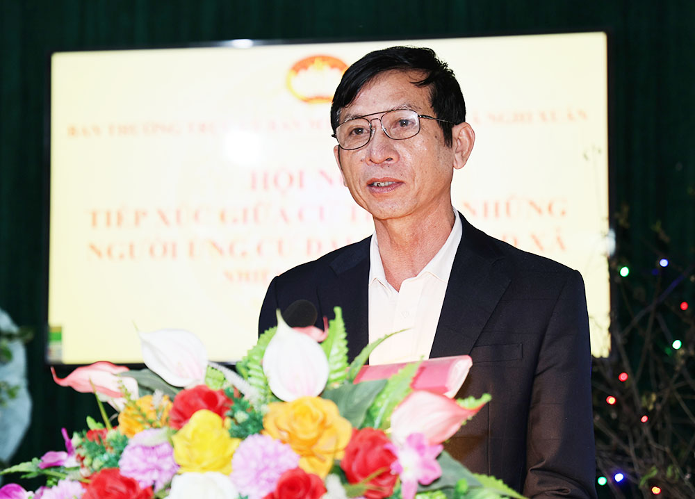Trình bày chương trình hành động, ông Phạm Chí Hiếu - Bí thư Đảng ủy, Chủ tịch HĐND xã ứng cử viên đại biểu HĐND xã bày tỏ niềm vinh dự khi được tín nhiệm ứng cử; đồng thời cam kết, nếu được cử tri tín nhiệm bầu là đại biểu HĐND xã, với trách nhiệm Bí thư Đảng ủy – Chủ tịch HĐND xã, sẽ luôn giữ vững bản lĩnh chính trị, tận tâm, tận lực với trách nhiệm cao nhất để thực hiện thắng lợi chương trình hành động đã đề ra, góp phần nâng cao đời sống vật chất và tinh thần của Nhân dân, xây dựng xã Nghi Xuân phát triển nhanh, bền vững; Huy động nguồn lực, tạo động lực thúc đẩy phát triển kinh tế - xã hội của xã. Đồng thời, tập trung lãnh đạo, chỉ đạo triển khai thực hiện quyết liệt, hiệu quả Nghị quyết Đại hội Đảng các cấp đề ra.