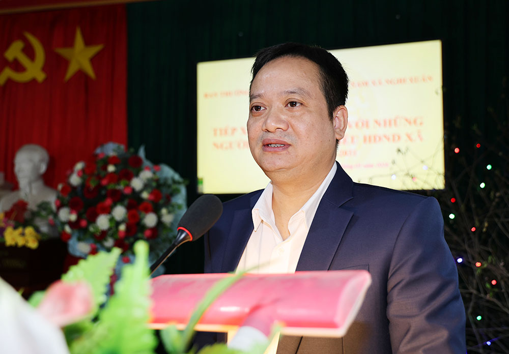 Ông Phạm Chí Hiếu - Bí thư Đảng ủy, Chủ tịch Hội đồng nhân dân xã Nghi Xuân trình bày chương trình hành động