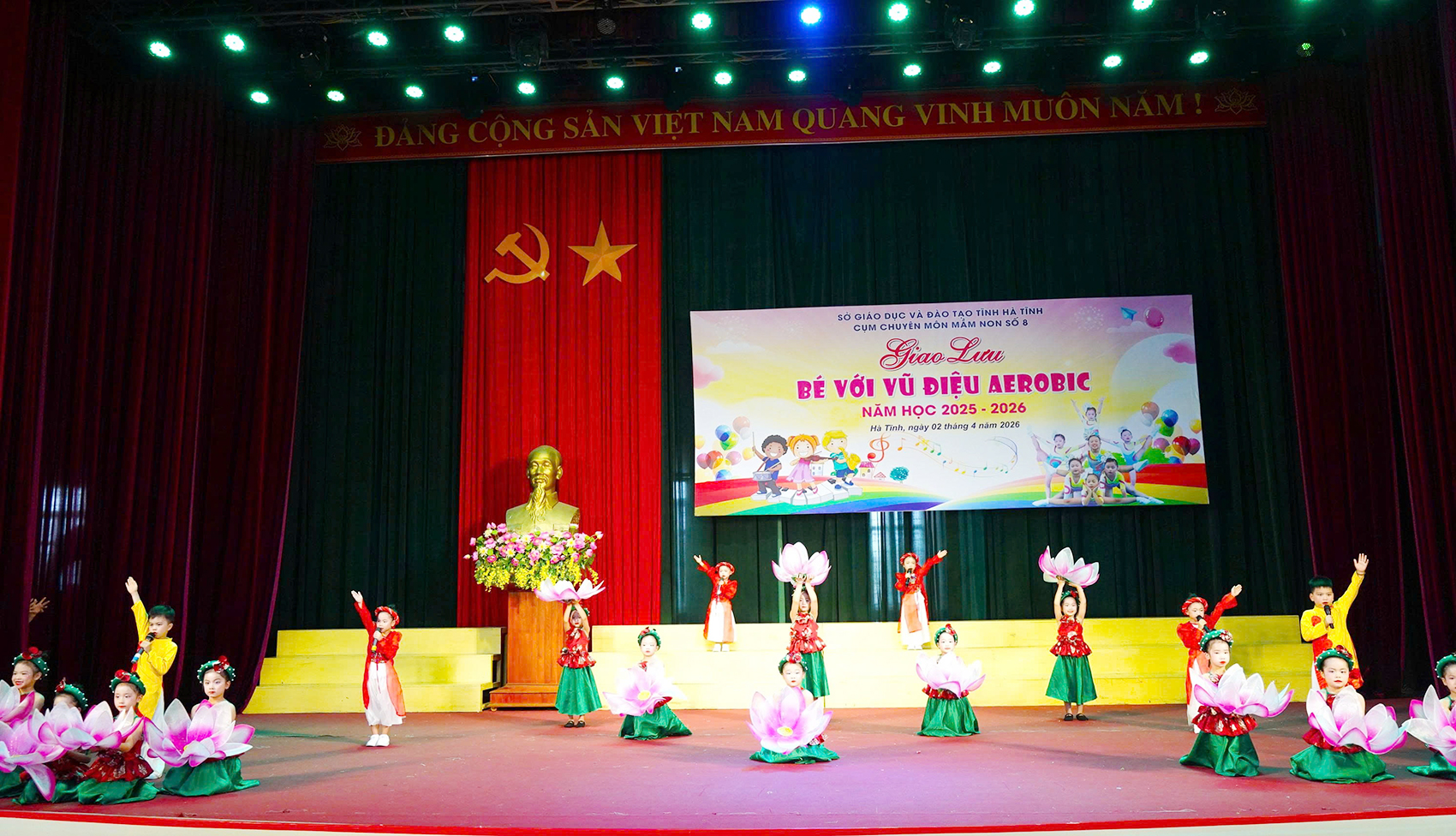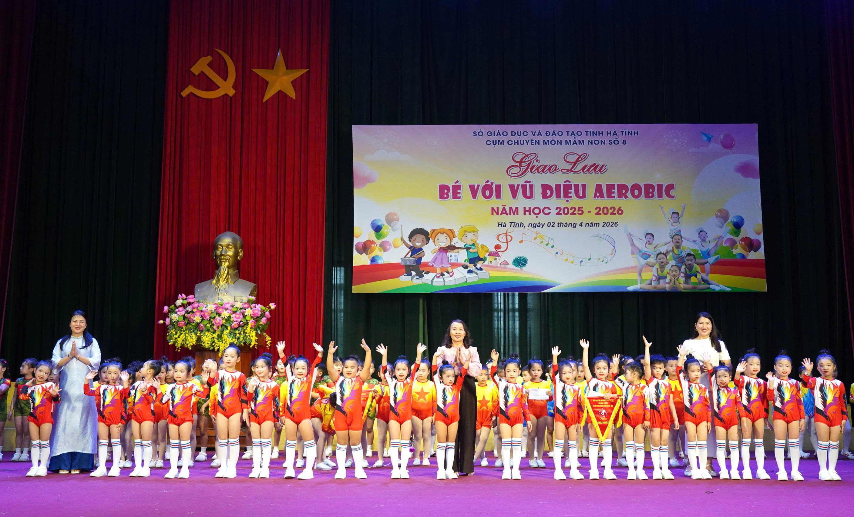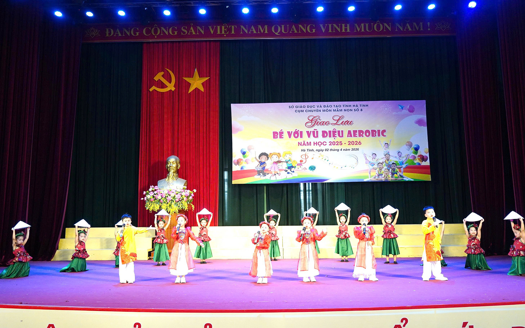 Những giai điệu sôi động vang lên cũng là lúc các “vũ công nhí” tự tin bước ra sân khấu, thể hiện những bài Aerobic khỏe khoắn, nhịp nhàng, đáng yêu và đầy sáng tạo