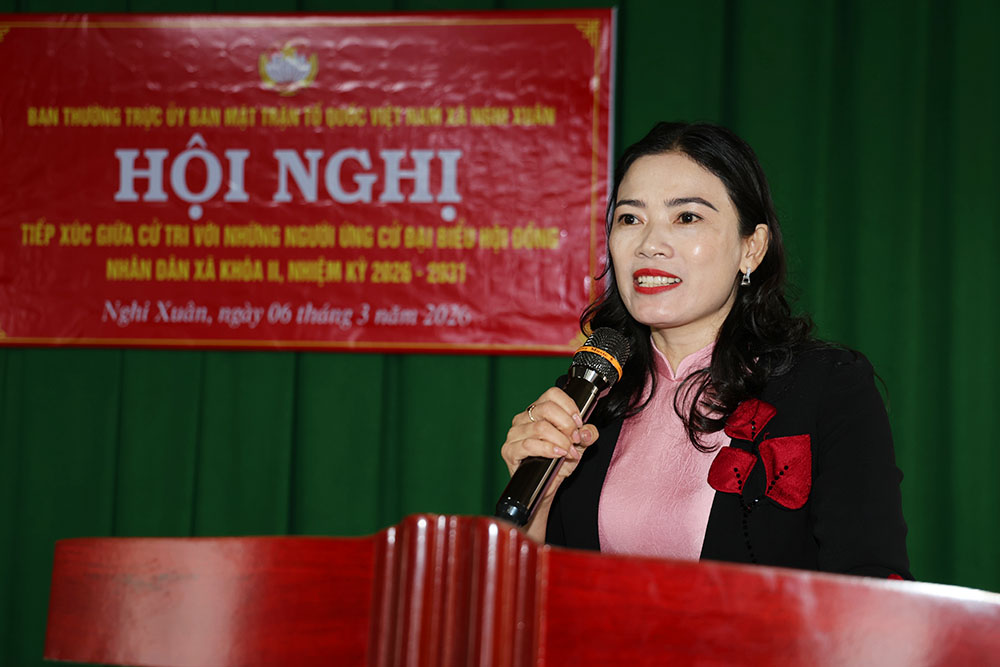Đại diện Ủy ban MTTQ xã thông qua danh sách 5 ứng cử viên đại biểu HĐND xã Nghi Xuân khóa II nhiệm kỳ 2026 - 2031 tại đơn vị bầu cử x số 1.