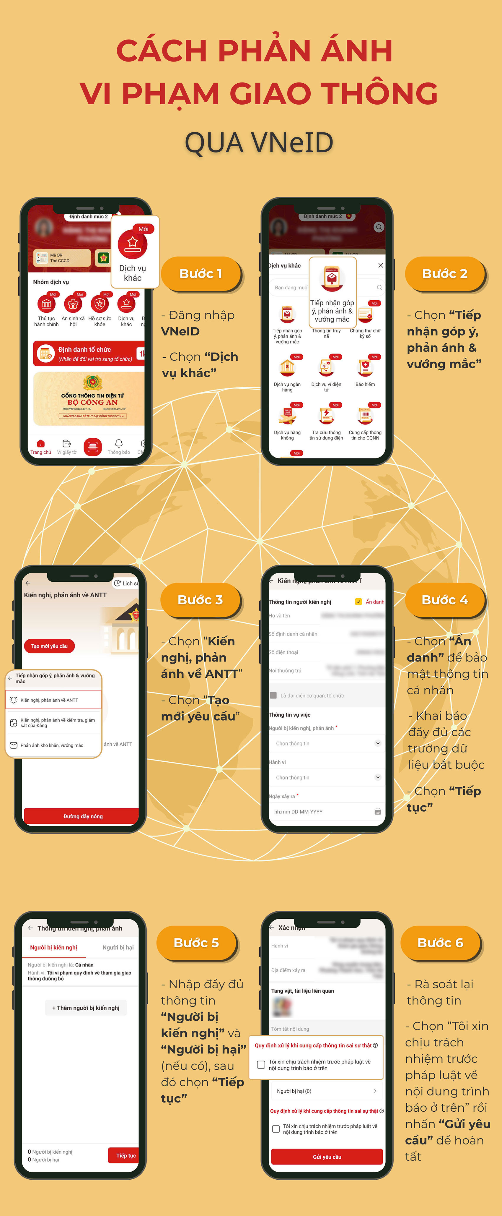 Cách phản ánh vi phạm giao thông qua VNeIDNam Thắng01/04/2026A -A+Nam Thắng01/04/2026A -A+Từ ngày 1/4/2026, người dân có thể gửi ảnh, video phản ánh vi phạm giao thông qua ứng dụng VNeID và được giữ kín danh tính; UBND các cấp được trao thẩm quyền tiếp nhận, thu thập dữ liệu phản ánh vi phạm.