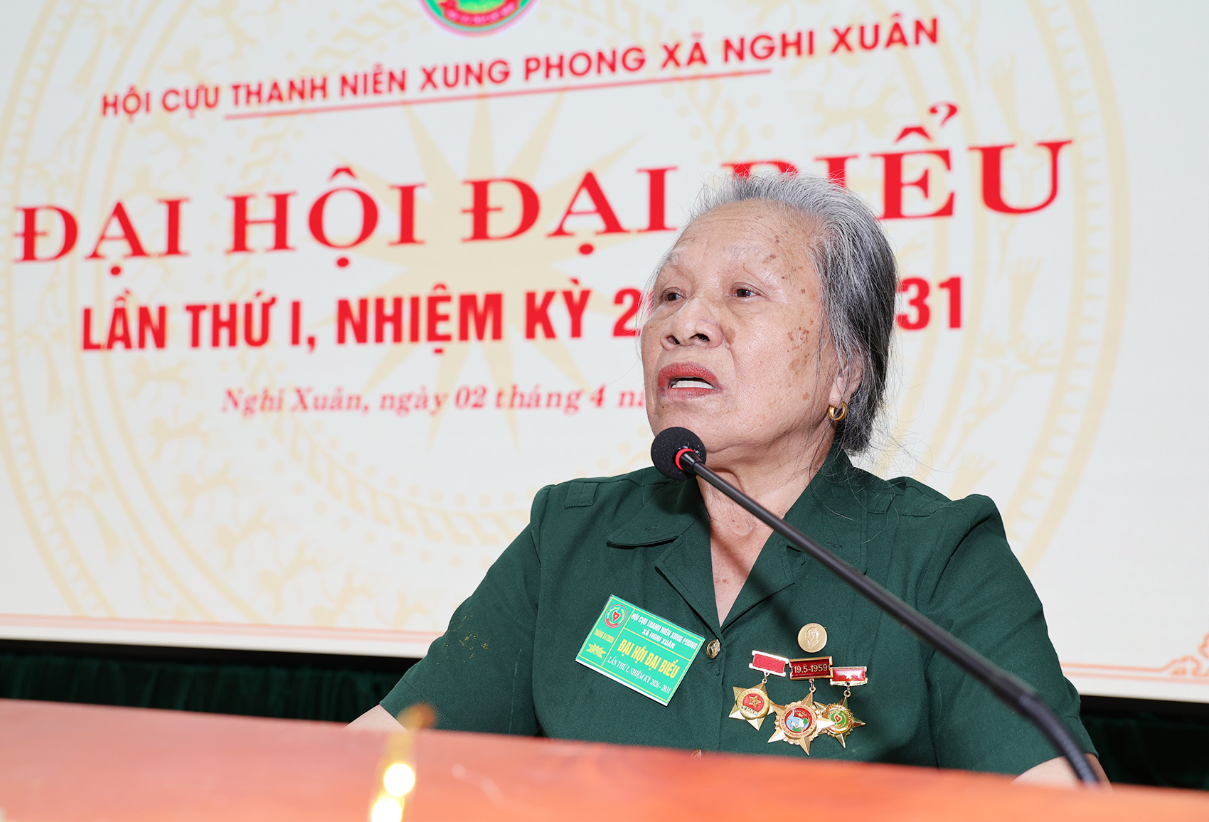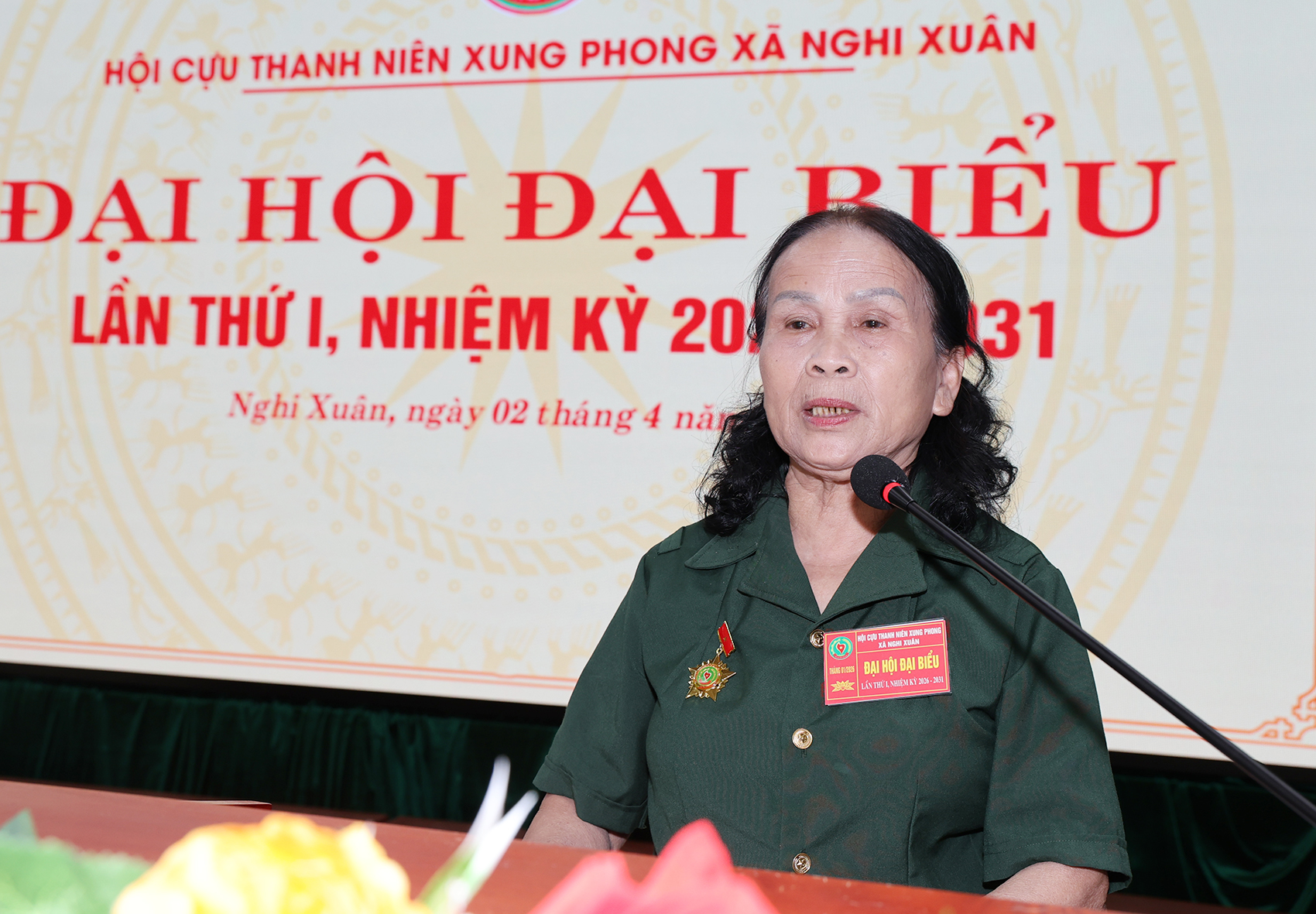 Phát biểu và tặng hoa chúc mừng Đại hội, đồng chí Dương Thị Thìn – UVBTV tỉnh Hội, Phó Chủ tịch Hội Cựu TNXP tỉnh đã biểu dương kết quả đạt được đồng thời đề nghị Hội trong nhiệm kỳ tới tiếp tục xây dựng tổ chức vững mạnh, đổi mới nội dung, phương thức hoạt động; chăm lo tốt hơn đời sống hội viên; phát huy vai trò gương mẫu của Cựu TNXP trong xây dựng nông thôn mới và giáo dục truyền thống cho thế hệ trẻ; tiếp tục phát huy truyền thống đoàn kết, nghĩa tình, gắn hoạt động của Hội với các phong trào thi đua tại địa phương, góp phần xây dựng xã Nghi Xuân phát triển toàn diện.