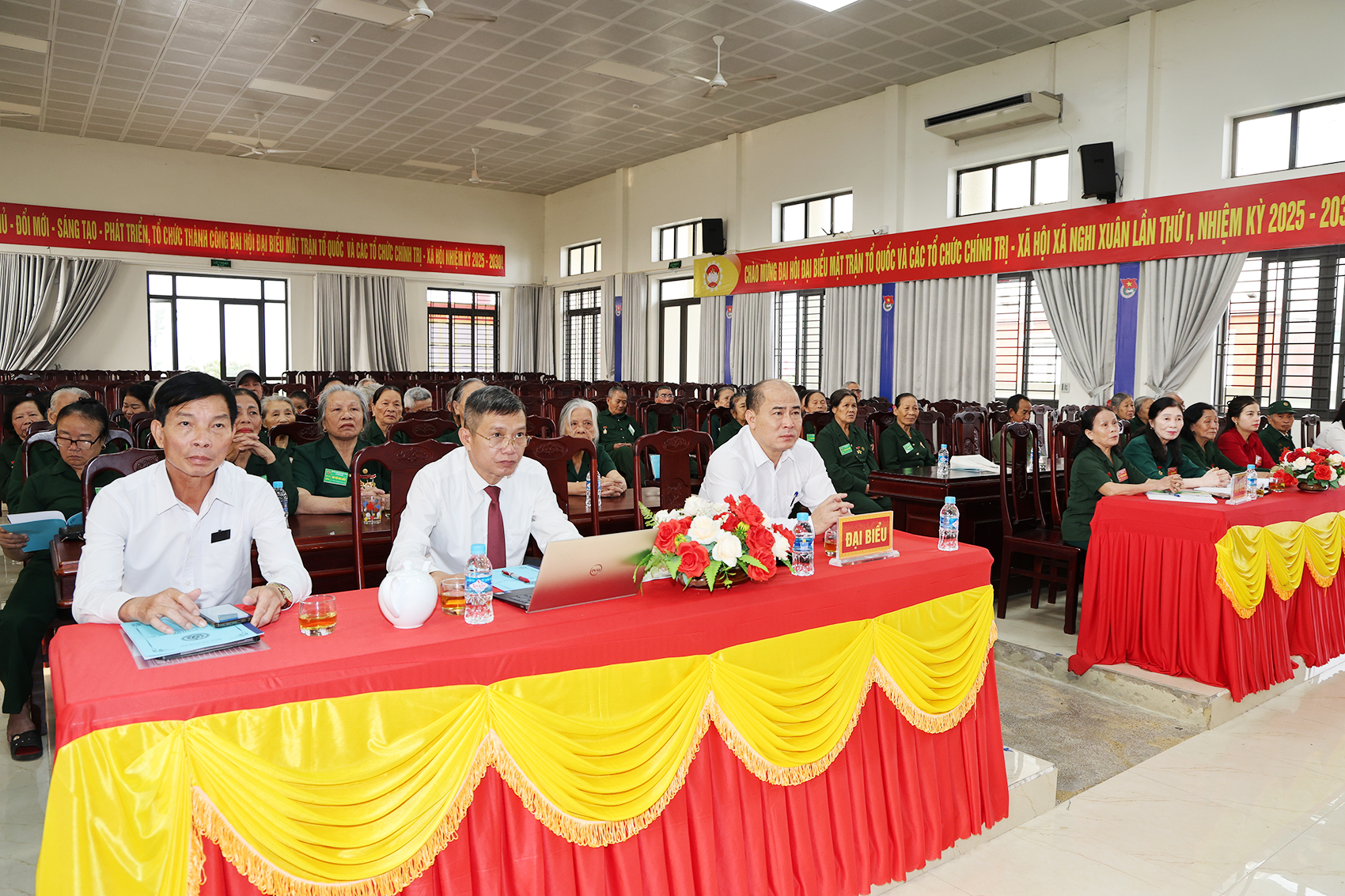 Dự đại hội, có các đồng chí: Dương Thị Thìn – Phó Chủ tịch Hội cựu TNXP tỉnh; Hoàng Hữu Hiệp – Phó Bí thư Thường trực Đảng ủy; Phan Duy Vĩnh - Ủy viên BTV, Phó Chủ tịch UBND xã; các đồng chí lãnh đạo các phòng, ban, ngành, đoàn thể và 50 đại biểu chính thức đại diện cho 155 hội viên toàn xã dự Đại hội.