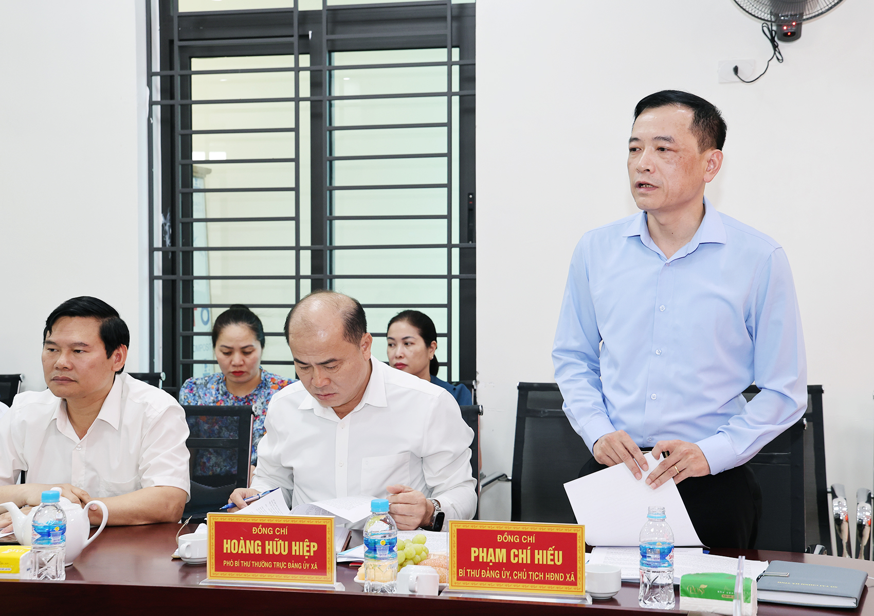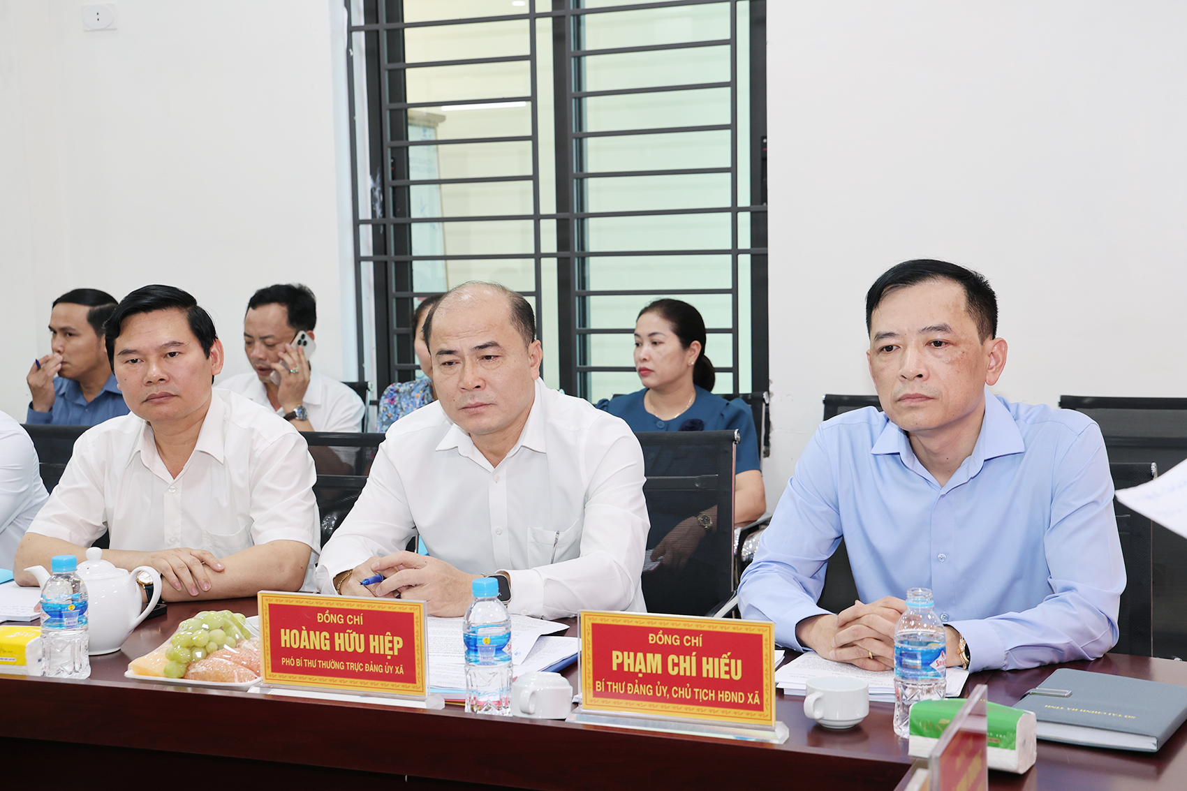 Tiếp và làm việc với đoàn có các đồng chí Phạm Chí Hiếu, Bí thư Đảng ủy – Chủ tịch HĐND xã; Hoàng hữu Hiệp, Phó Bí thư Thường trực Đảng ủy; Bùi Việt Hùng, Phó Bí thư Đảng ủy – Chủ tịch UBND xã, các đồng chí trong ban Thường vụ Đảng ủy xã.
