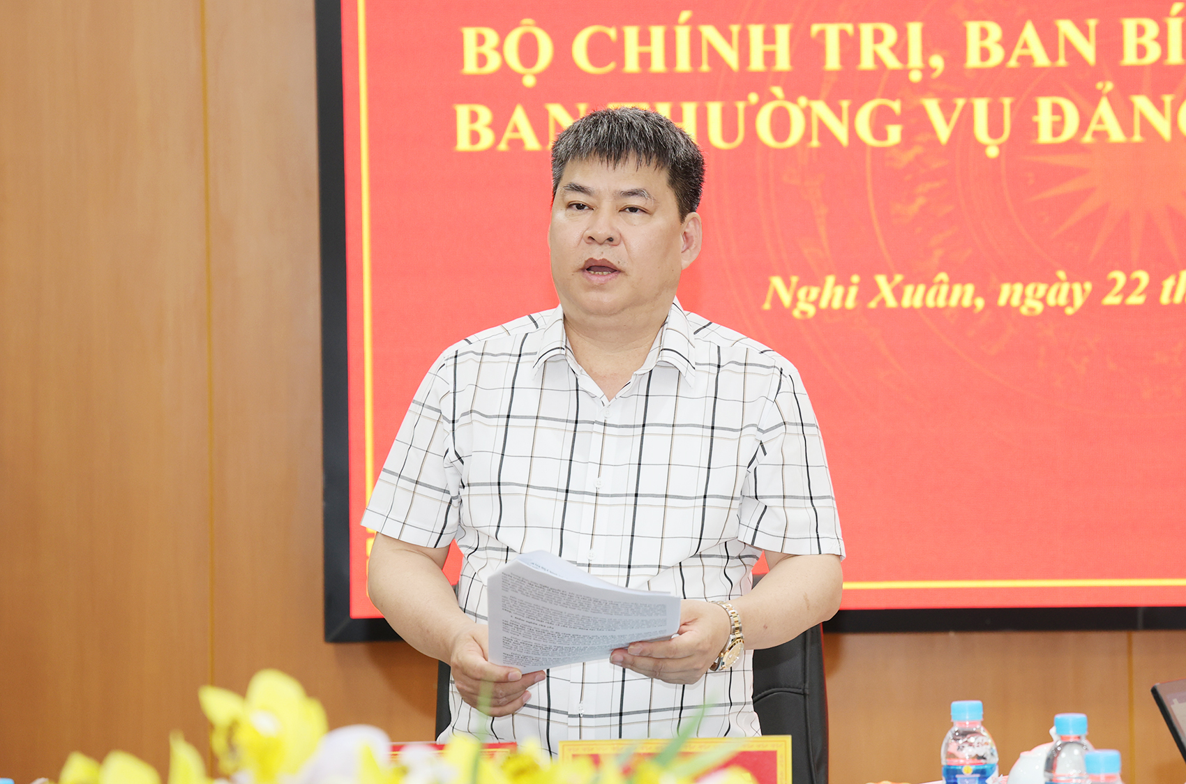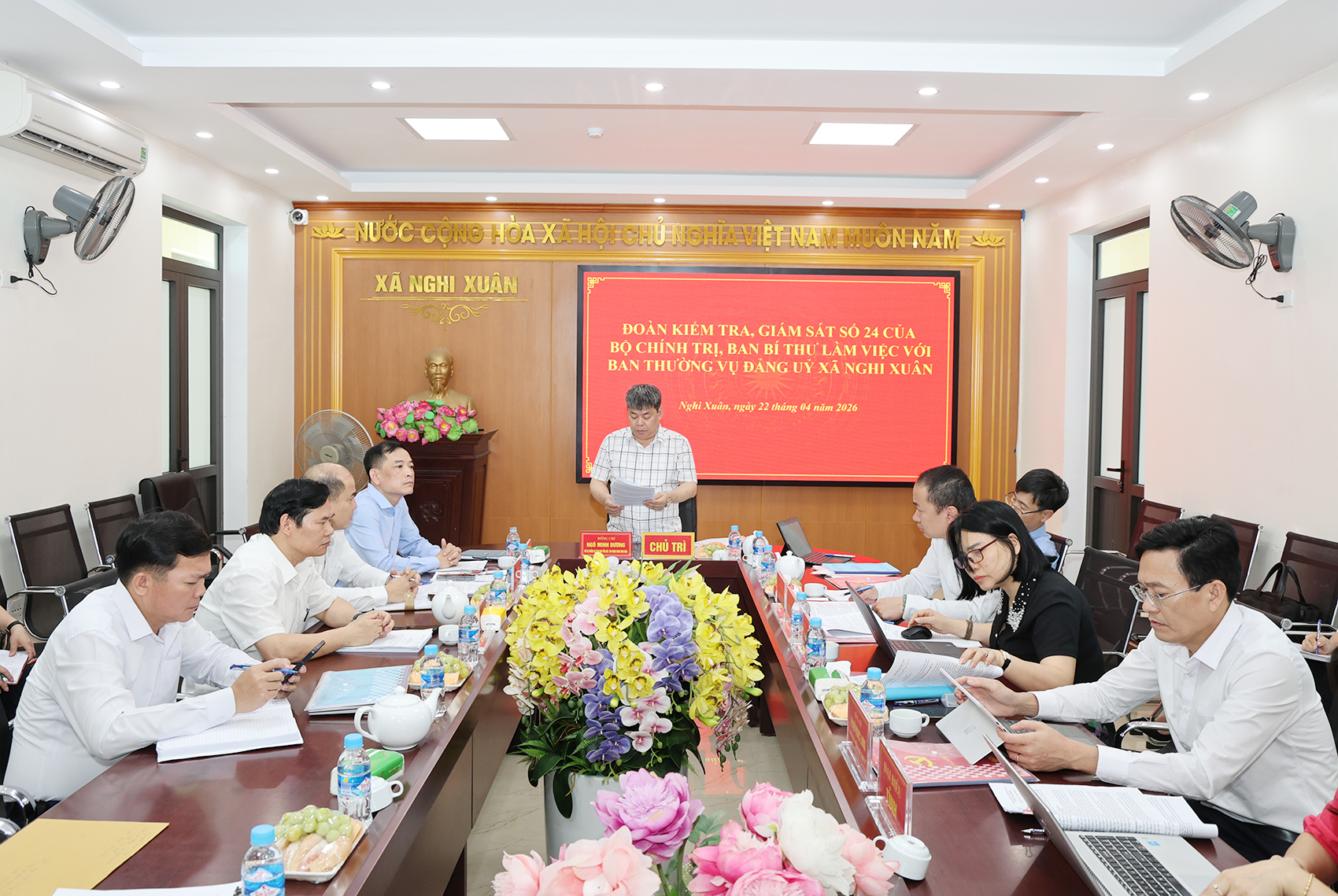 Tại buổi làm việc lãnh đạo xã Nghi Xuân đã báo cáo tình hình và kết quả đạt được cũng như những khó khăn vướng mắc về việc tổ chức và hoạt động của các tổ chức Đảng, Chính quyền, UBMTTQ, đơn vị dịch vụ công của xã sau vận hành chính quyền địa phương 2 cấp; các nhiệm vụ, giải pháp nhằm bảo đảm thực hiện mục tiêu tăng trưởng tổng sản phẩm trong xã (GDP) bình quân trong giai đoạn 2026 - 2030 từ 10% trở lên theo Nghị quyết Đại hội XIV của Đảng; việc lãnh đạo, chỉ đạo, tổ chức thực hiện Nghị quyết số 57-NQ/TW của Bộ Chính trị về đột phá phát triển khoa học công nghệ, đổi mới sáng tạo và chuyển đổi số quốc gia; việc thực hiện kiểm điểm, đánh giá, xếp loại chất lượng tổ chức Đảng, đảng viên và tập thể, cá nhân cán bộ lãnh đạo, quản lý các cấp, việc bố trí sắp xếp cán bộ, công chức tại các phòng, ban chuyên môn, việc quản lý, sử dụng tài sản dôi dư sau sáp nhập, nguồn thu ngân sách chủ yêu có tính tăng trưởng bền vững…