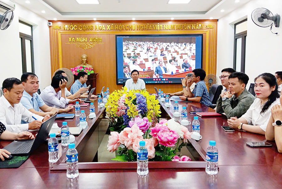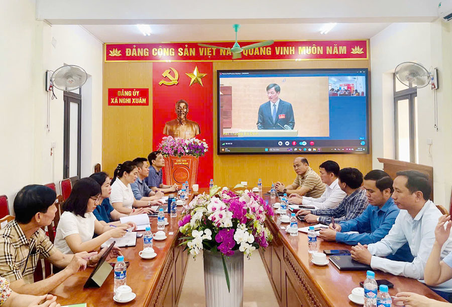 Dự hội nghị tại điểm cầu xã Nghi Xuân có các đồng chí Phạm Chí Hiếu – Bí thư Đảng ủy, Chủ tịch HĐND xã; Hoàng Hữu Hiệp – Phó Bí thư Thường trực Đảng ủy; Bùi Việt Hùng – Phó Bí thư Đảng ủy, Chủ tịch UBND xã; các đồng chí Ủy viên Ban Thường vụ Đảng ủy, Ủy viên Ban Chấp hành Đảng bộ xã, lãnh đạo phòng, ban, ngành.