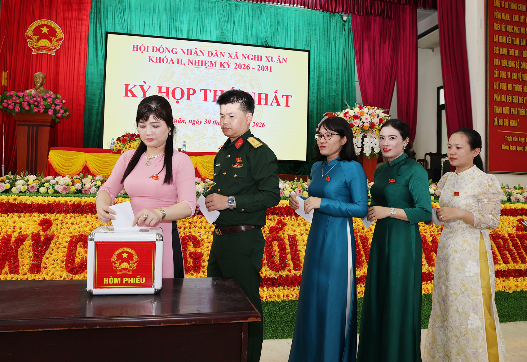 Tại kỳ họp, HĐND xã đã tiến hành bầu các chức danh của HĐND, UBND nhiệm kỳ 2026 - 2031.Với tinh thần dân chủ, khách quan, trách nhiệm, các đại biểu cũng đã bỏ phiếu bầu các chức danh chủ chốt của HĐND xã Nghi Xuân.