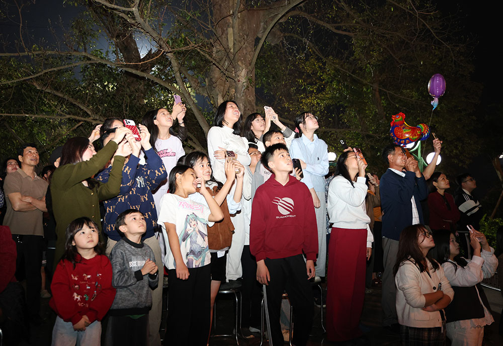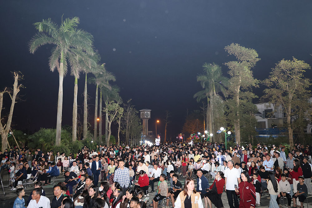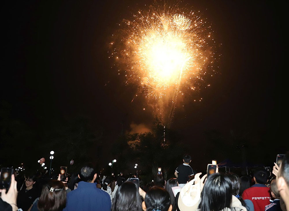 Sau chương trình nghệ thuật là màn pháo hoa được tổ chức sớm đã thu hút đông đảo người dân và du khách đến theo dõi. Khi những chùm sáng đầu tiên vút lên, bầu trời bỗng rực rỡ trong tiếng reo hò phấn khích.