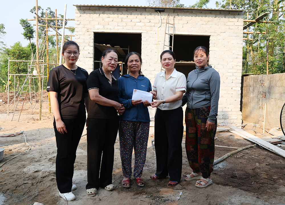 Trao tiền hỗ trợ xây dựng nhà ở cho hộ bà bà Đậu Thị Tâm (SN 1955) ở thôn Hồng Thịnh.