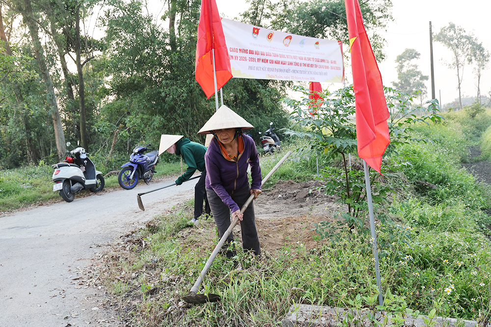Tại thôn Xuân An 9, công tác chuẩn bị được triển khai bài bản, chu đáo. Ông Nguyễn Tiến Dũng, thôn Trưởng,thôn Xuân An 9 cho biết: “Đợt thi đua cao điểm là dịp để khơi dậy tinh thần đoàn kết, trách nhiệm của cán bộ, hội viên và Nhân dân trong xây dựng nông thôn mới, chỉnh trang khu dân cư kiểu mẫu. Vì vậy, ngay từ sáng sớm đã có hơn 200 cán bộ, hội viên, đoàn viên và bà con Nhân dân hưởng ứng ra quân phát quang các tuyến đường giao thông, chỉnh trang nhà văn hóa, sân thể thao, vệ sinh môi trường, xử lý rác thải”.