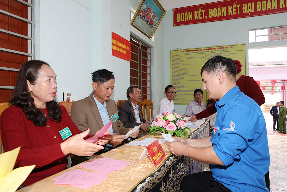 Xã Nghi Xuân có 39 khu vực bỏ phiếu với trên 21.500 cử tri. Ngay từ sáng sớm, đông đảo cử tri đã có mặt tại khu vực bỏ phiếu để thực hiện quyền và nghĩa vụ công dân.