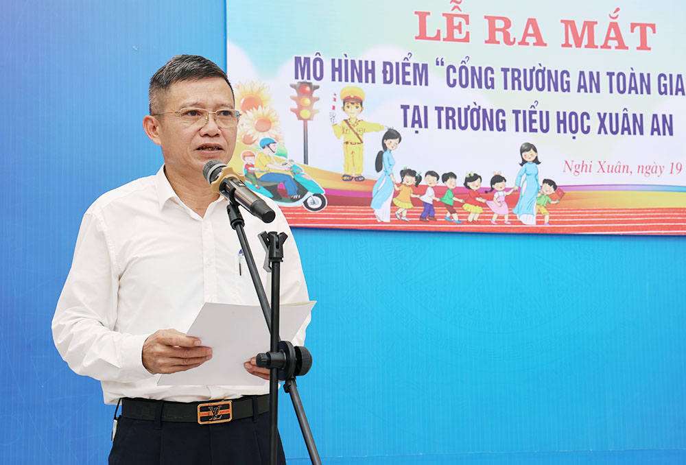 Phó chánh Văn phòng UBND xã Nghi Xuân Đậu Sỹ nguyên thông qua Quyết định thành lập Mô hình “Cổng trường an toàn giao thông” tại Trường Tiểu học Xuân An