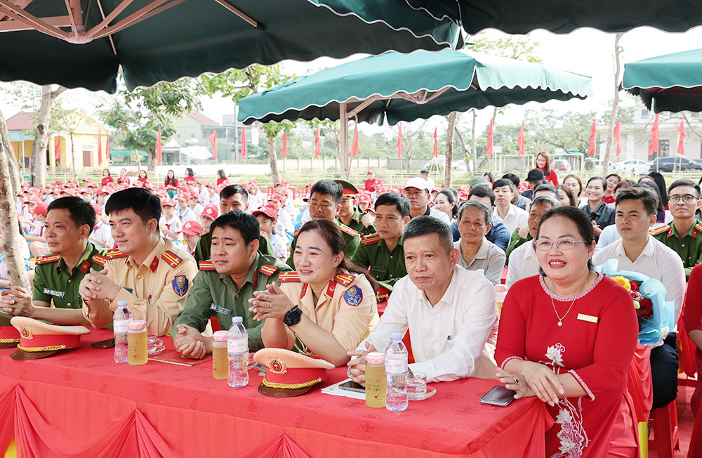 Phát biểu tại buổi lễ, đồng chí Phan Duy Vĩnh- Phó Chủ tịch UBND xã, nhấn mạnh việc thành lập mô hình này thể hiện quyết tâm của cấp ủy, chính quyền địa phương và lực lượng chức năng trong việc nâng cao nhận thức, hình thành nếp sống văn hóa giao thông và văn hóa ứng xử khi tham gia giao thông, nhất là đối với lứa tuổi học sinh ngay từ khi còn ngồi trên ghế nhà trường. Đồng chí Phó Chủ tịch UBND xã đề nghị cán bộ, giáo viên nhà trường cùng chung tay phối hợp duy trì thực hiện tốt để mô hình thực sự đi vào cuộc sống, mang lại hiệu quả, góp phần mang lại sự an toàn cho học sinh.