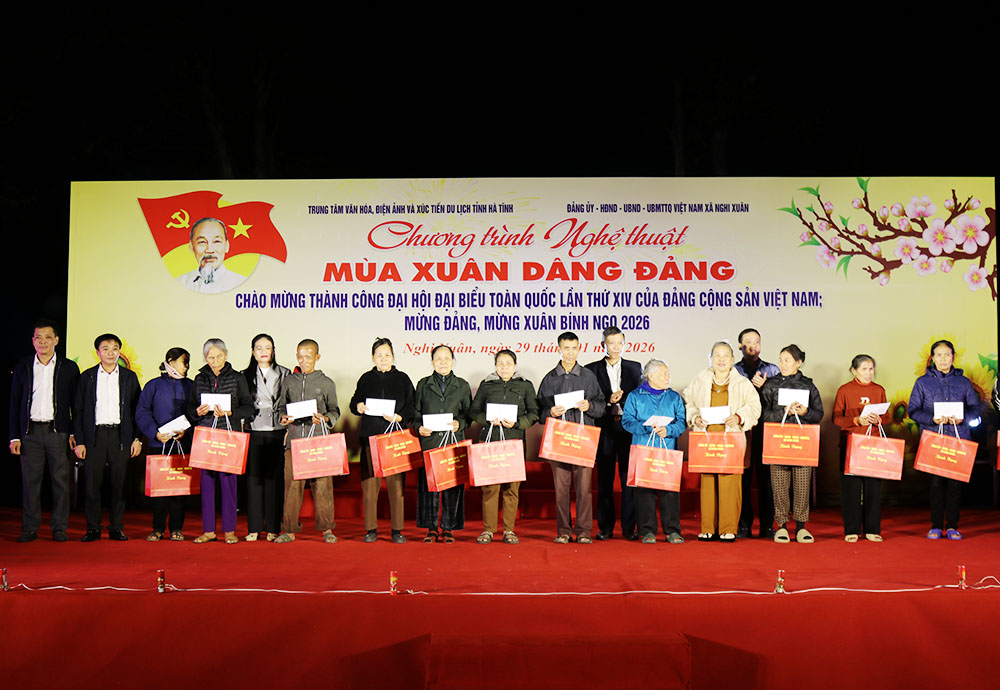 Tại chương trình Đảng ủy – HĐND -UBND – UBMTTQ xã Nghi Xuân đã trao 25 suất quà, mỗi suất trị giá 1 triệu đồng tiền mặt và một phần quà cho các hộ gia đình có hoàn cảnh khó khăn trên địa bàn xã.