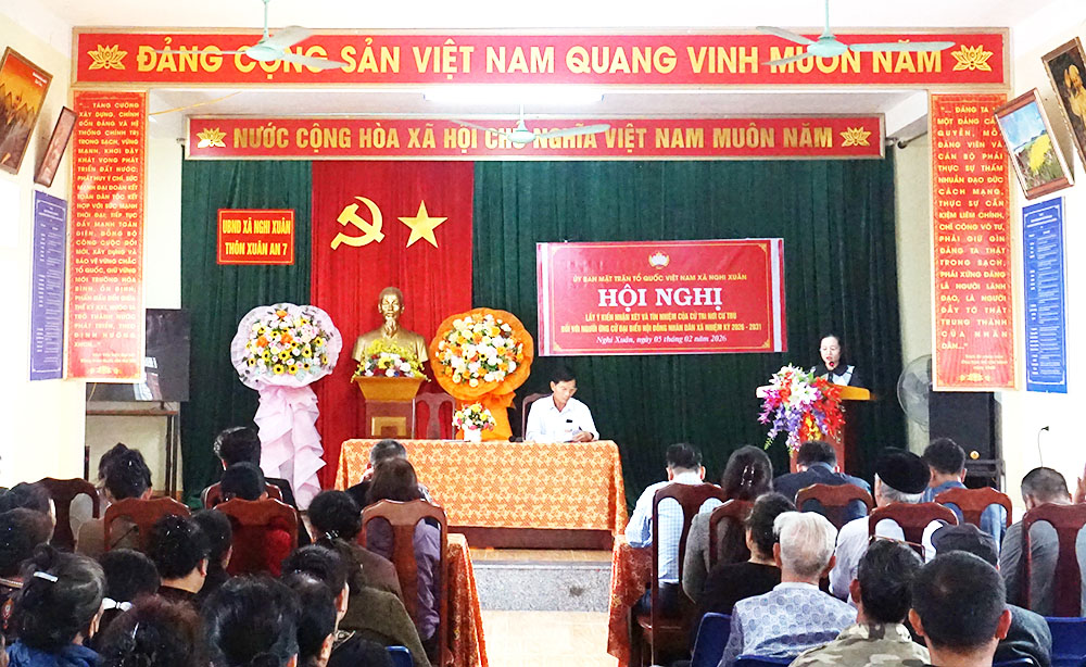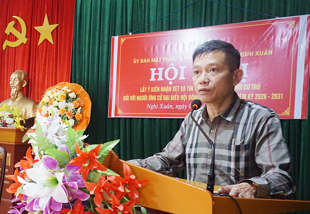 Tại hội nghị, Ủy ban MTTQ Việt Nam xã Nghi Xuân đã thông qua danh sách, tiểu sử tóm tắt của 6 đại biểu gồm: ông Phan Duy Vĩnh; ông Hồ Anh Đức; bà Phạm Thị Hằng; bà Phan Thị Thu Hiền; bà Nguyễn Thị Thanh Nga và bà Đậu Thị Loan.