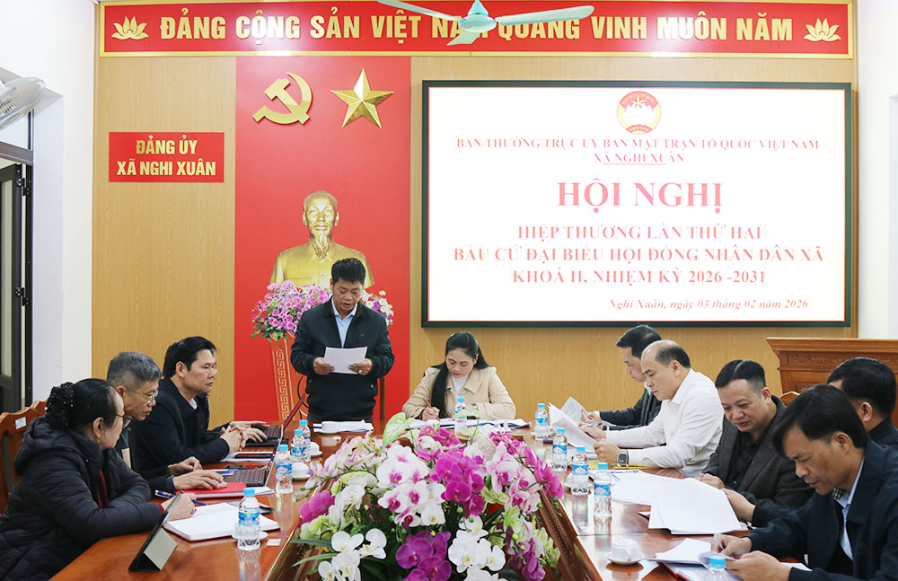 Sáng 3/2, Ban Thường trực Ủy ban MTTQ Việt Nam xã Nghi Xuân tổ chức Hội nghị hiệp thương lần thứ hai để thỏa thuận, lập danh sách sơ bộ những người ứng cử đại biểu HĐND xã khóa II, nhiệm kỳ 2026-2031.Dự hội nghị có các đồng chí: Phạm Chí Hiếu - Bí thư Đảng ủy, Chủ tịch HĐND xã, Chủ tịch Ủy ban Bầu cử xã; Hoàng Hữu Hiệp - Phó Bí thư Thường trực Đảng ủy; Bùi Việt Hùng – Phó Bí thư, Chủ tịch UBND xã.