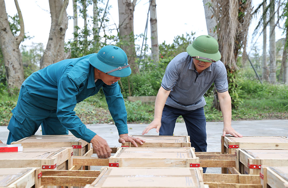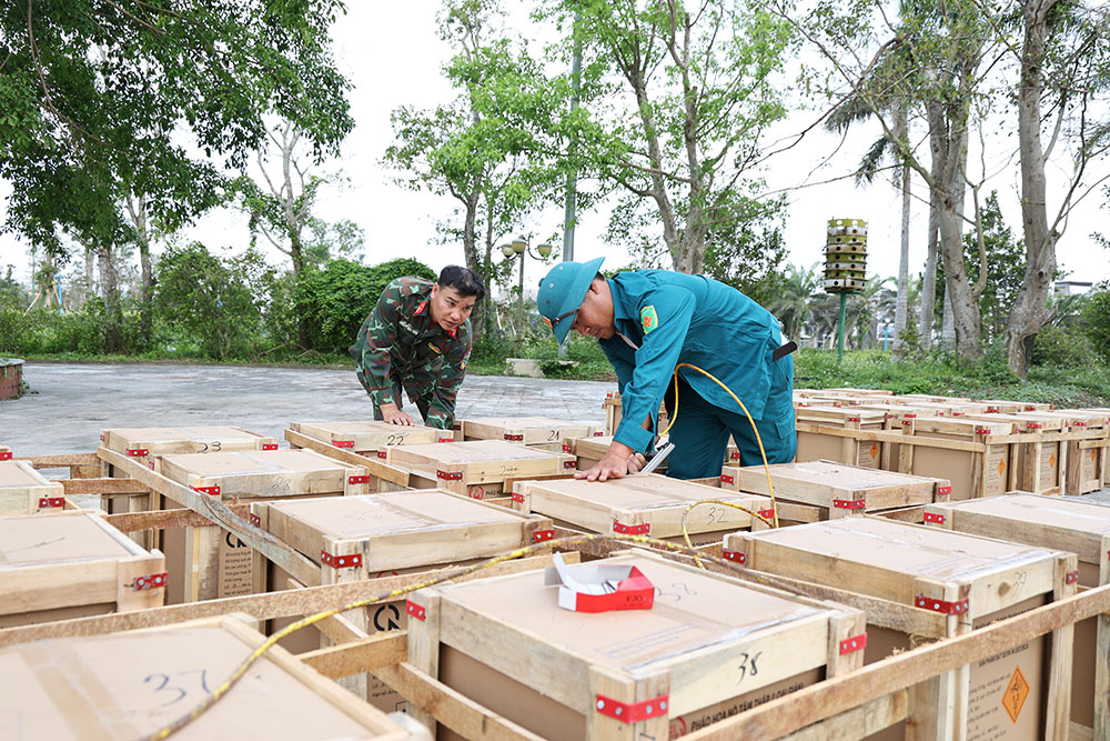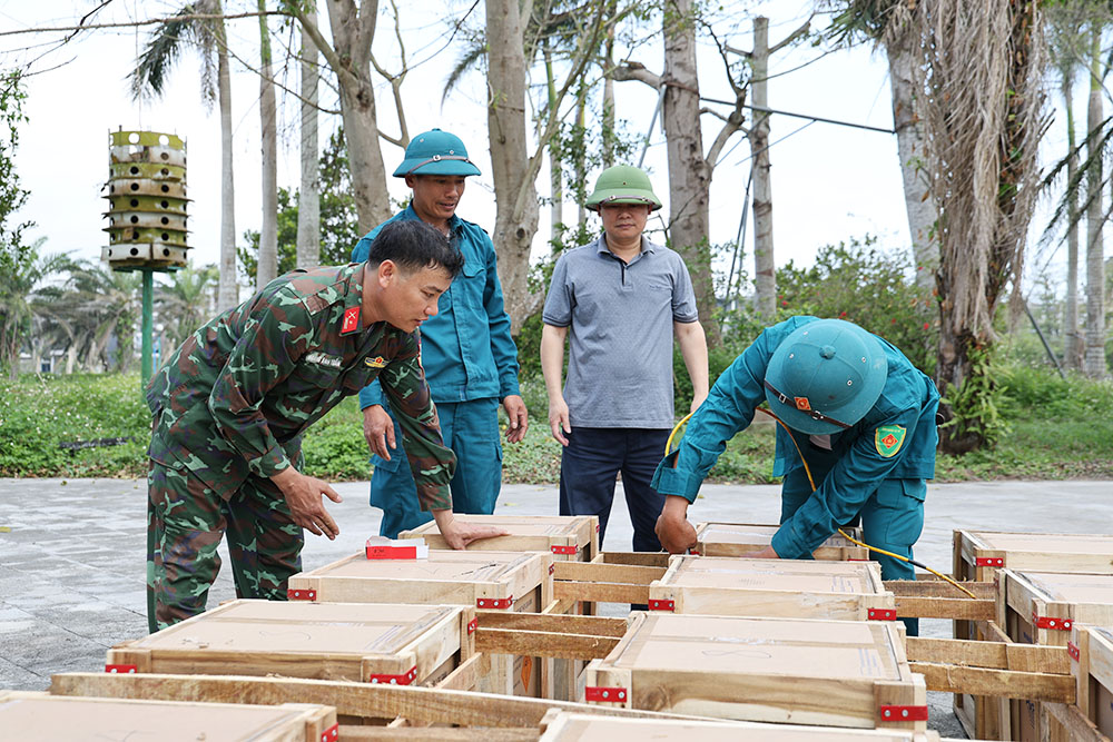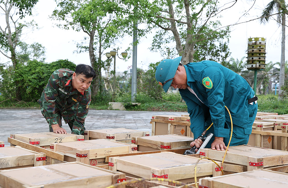 Từ sáng 16/2 (tức 29 Tết), cán bộ, chiến sĩ, nhân viên Ban Chỉ huy Quân sự xã Nghi Xuân, cùng lực lượng dân quân tự vệ đã có mặt tại khu đô thị Xân An để lắp đặt trận địa pháo hoa.