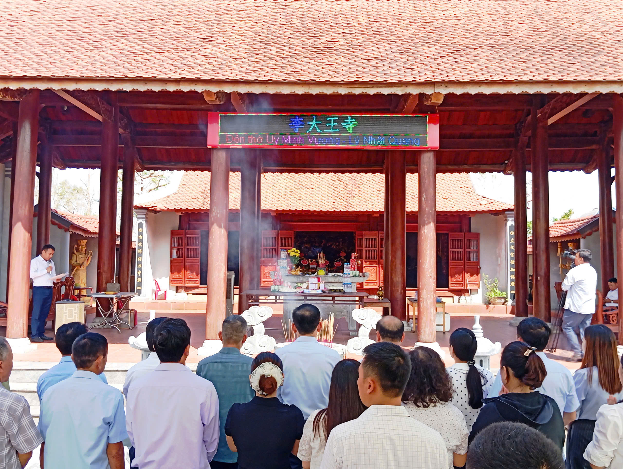 Về tham dự lễ giỗ ngài Uy Minh Vương – Lý Nhật Quang có các Đ/c: Phạm Chí Hiếu - Bí thư Đảng ủy, Chủ tịch HĐND; Đ/c Hoàng Hữu Hiệp - Phó BT thường trực Đảng ủy; Đ/c Phan Duy Vĩnh - Phó Chủ tịch UBND xã - trưởng BQL di tích, Cùng các đồng chí trong thường trực Đảng ủy, HĐND, lãnh đạo UBND, thường trực UBMTTQ, Trưởng phó các ngành đoàn thể, cán bộ, công chức cấp xã, Công an; Trạm trưởng trạm y tế, Hiệu trưởng trường Tiểu học, trường Mầm Non; Ban quản lý di tích lịc sử văn hóa Đền huyện; đại diện các nhà chùa. Đại diện lãnh đạo Hội doanh nghiệp xã, các đồng chí Bí thư, thôn trưởng và toàn thể bà con nhân dân.
