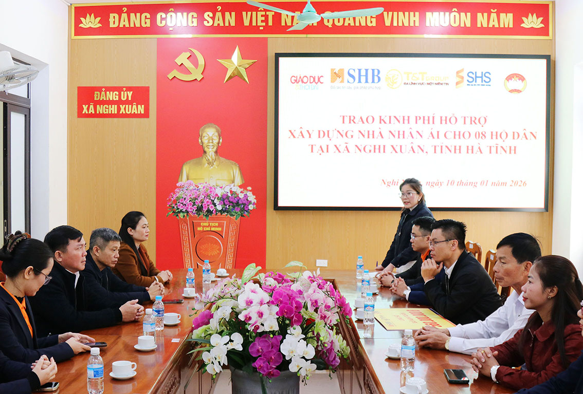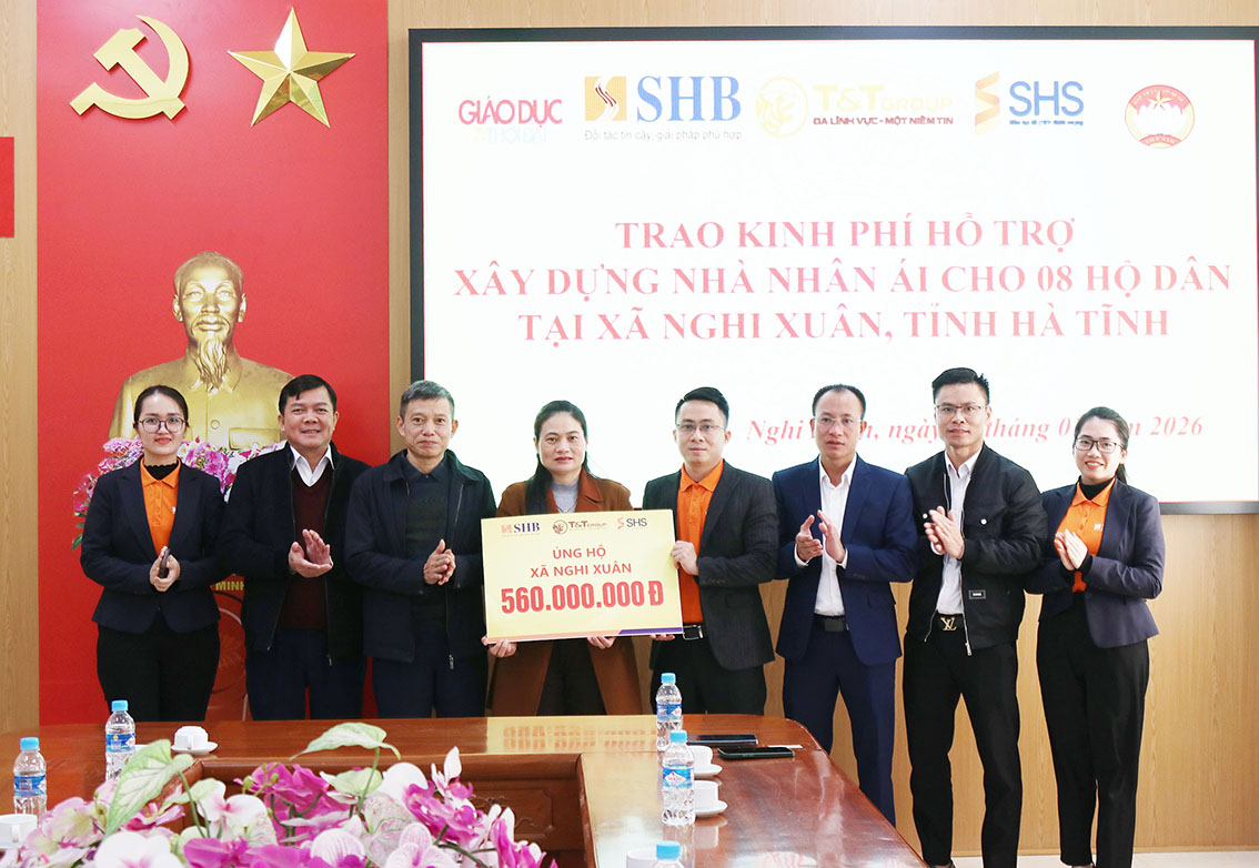Theo đó, 8 hộ dân có nhà bị hư hoảng nặng do bão số 10 ở xã Nghi Xuân được hỗ trợ 70 triệu đồng/hộ. Số tiền do Tập đoàn T&T Group; Công ty CP Chứng khoán Sài Gòn (SHS); Ngân hàng TMCP Sài Gòn-Hà Nội (SHP) – Chi nhánh Hà Tĩnh; Văn phòng Báo Giáo dục và Thời đại Khu vực Bắc Trung hỗ trợ.