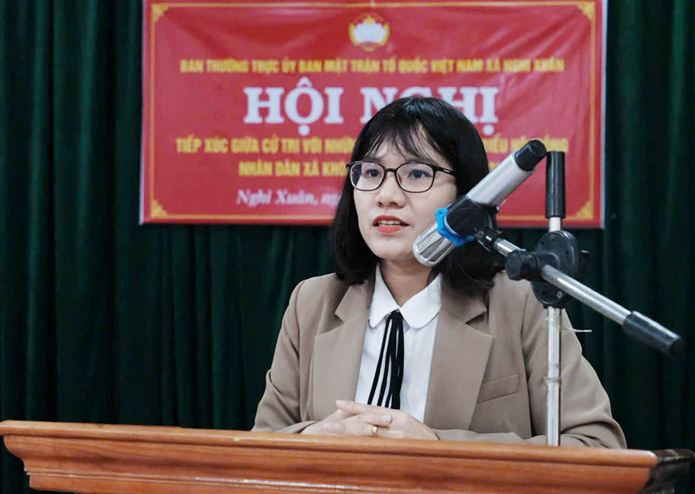 bà Trương Thị Thu Thủy - Công chức Ủy ban MTTQViệt Nam xã, Phó Chủ tịch Hội LHPN xã Nghi Xuân trình bày chương trình hành động